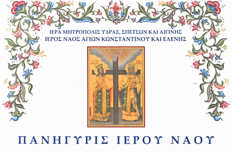 Πανήγυρις Ιερού Ναού Στον ομώνυμο Ιερό Ναό (παλαιά ενορία παπα-Φρουδάκη) για τον εορτασμό των Ισαποστόλων Κωνσταντίνου και Ελένης.