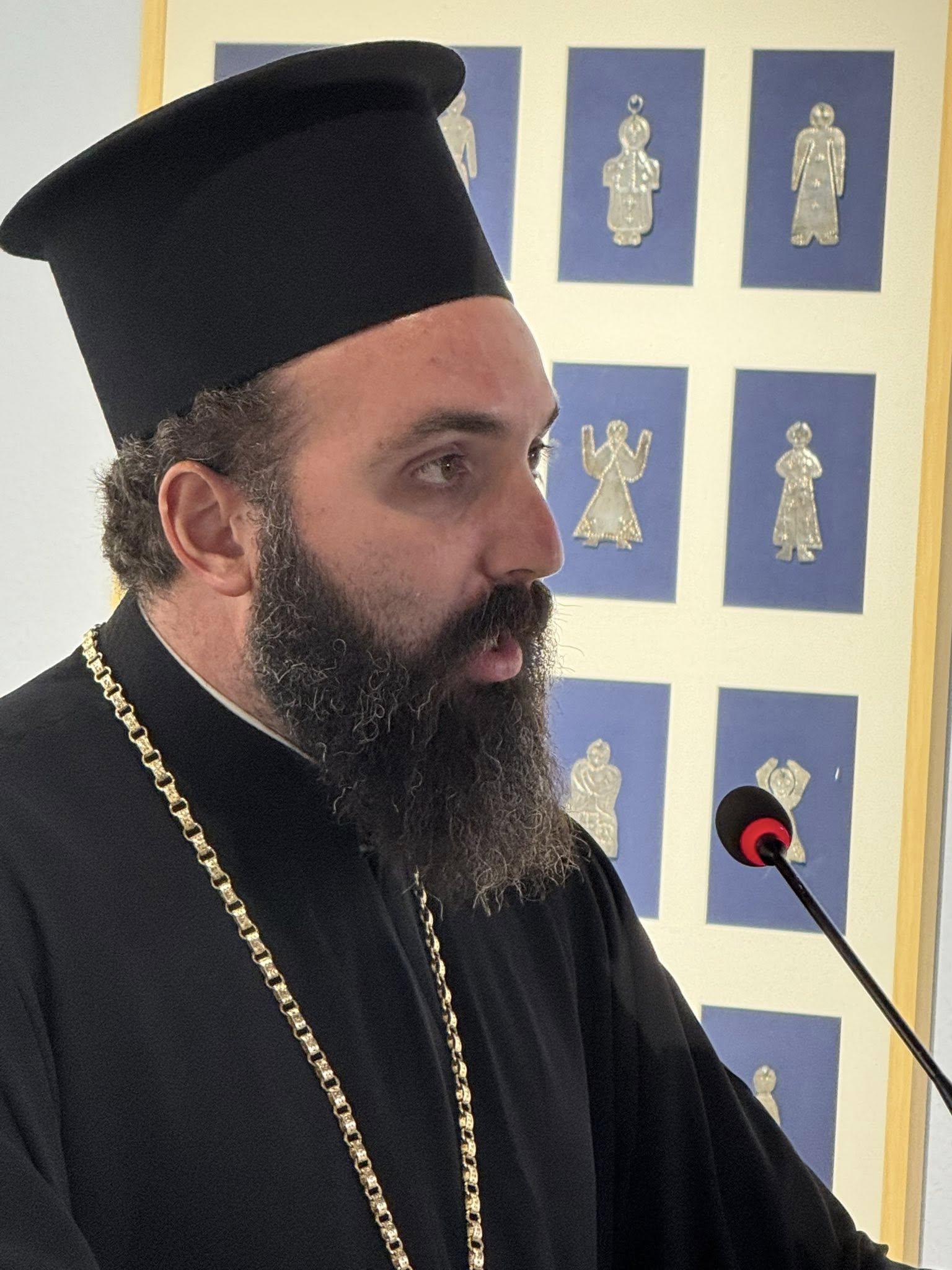Τον Σεβασμιώτατο Μητροπολίτη εκπροσώπησε ο Πρωτοσύγκελλος της Ιεράς Μητροπόλεως Αρχιμ. Νεκτάριος Δαρδανός, ο οποίος μίλησε σχετικά, αναφέρθηκε στην έννοια του τάματος, ευχαρίστησε τους συντελεστές και την κ. Λόλα Νταϊφά για το έργο της και την συμβολή της στον χώρο του πολιτισμού και της τέχνης.
