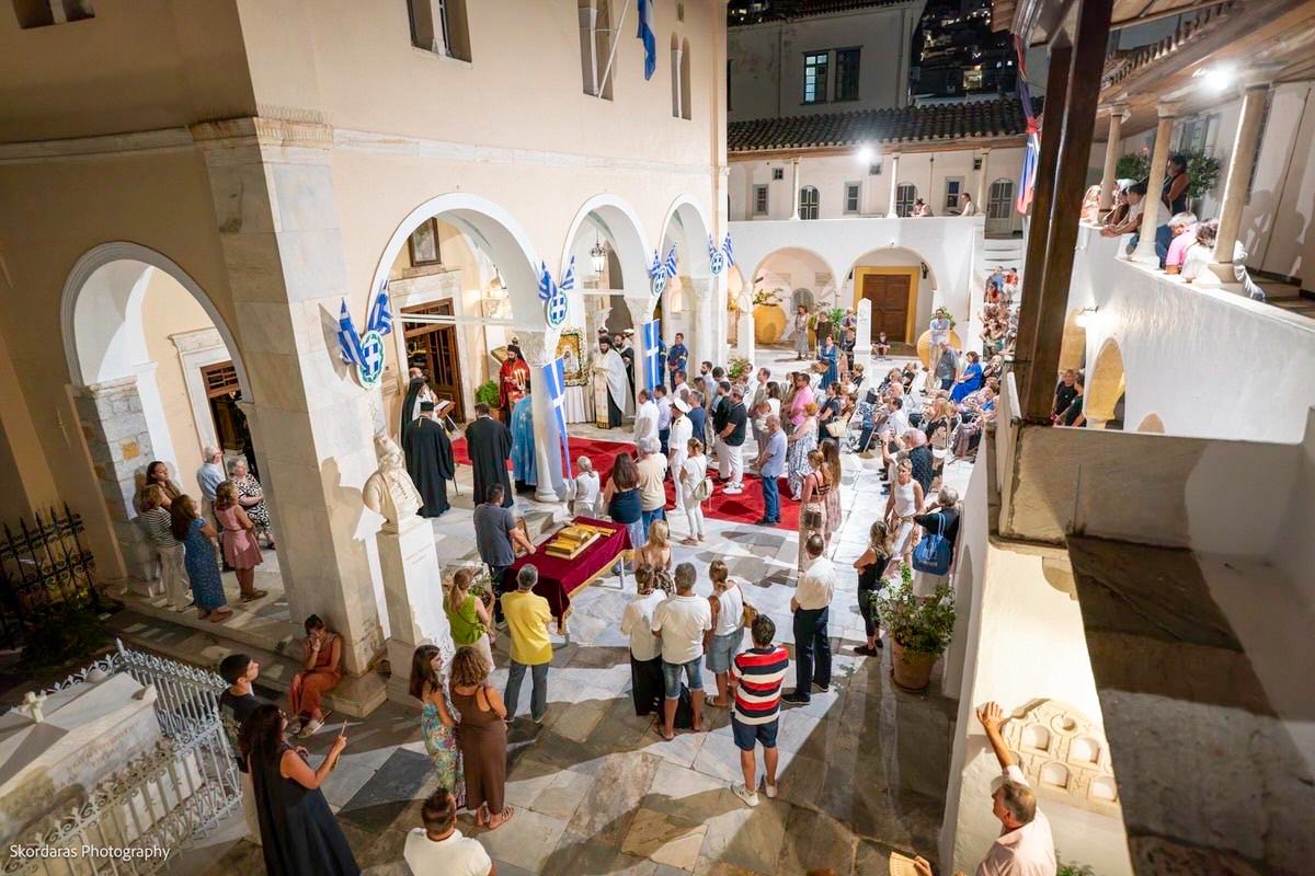 Με λαμπρότητα και μεγαλοπρέπεια, κατά την εκκλησιαστική τάξη, τελέσθηκε η Ιερά Αγρυπνία για την Απόδοση της Εορτής της Κοιμήσεως της Θεοτόκου στον περικαλλέστατο Καθεδρικό Ιερό Ναό της Ύδρας, το εσπέρας της 22ας Αυγούστου, η οποία περατώθηκε μετά το μεσονύκτιον.