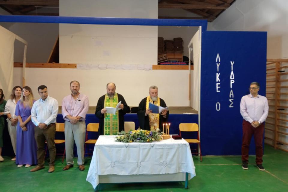 Στο Γυμνάσιο- Λύκειο Ύδρας, την Πέμπτη 11η Σεπτεμβρίου τελέσθηκε ο αγιασμός για την έναρξη της νέας Σχολικής Χρονιάς από τον Γενικό Αρχιερατικό Επίτροπο πρωτ. π. Ακίνδυνο Δαρδανό και τον πρωτ. π. Γεώργιο Βλαχόπουλο.