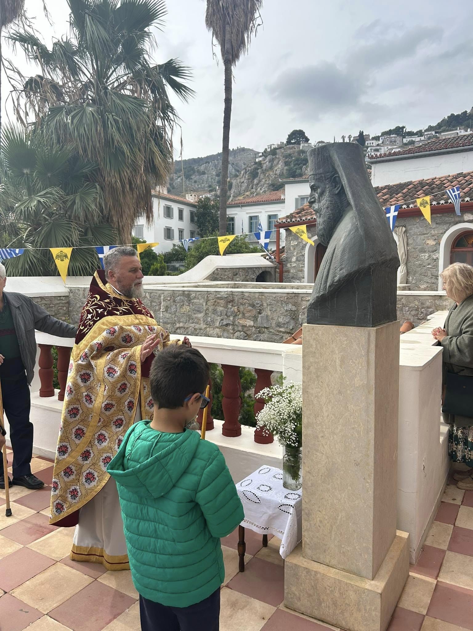 Στο τέλος της Θ. Λειτουργίας ο Γενικός Αρχιερατικός Επίτροπος ετέλεσε Τρισάγιο εις την προτομή του αοιδίμου Γέροντος Μητροπολίτου πρ.Ύδρας Κυρού ΙΕΡΟΘΕΟΥ, κτίτορος και εμπνευστού του Ιδρύματος και του εν λόγω Ι. Ναού.