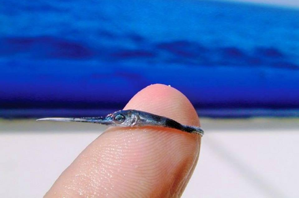 Μια κοντινή φωτογραφία ενός λιλιπούτειου «μωρού» ξιφία επάνω στο δάχτυλό του, έβγαλε ο θαλάσσιος βιολόγος Juan C. Levesque!