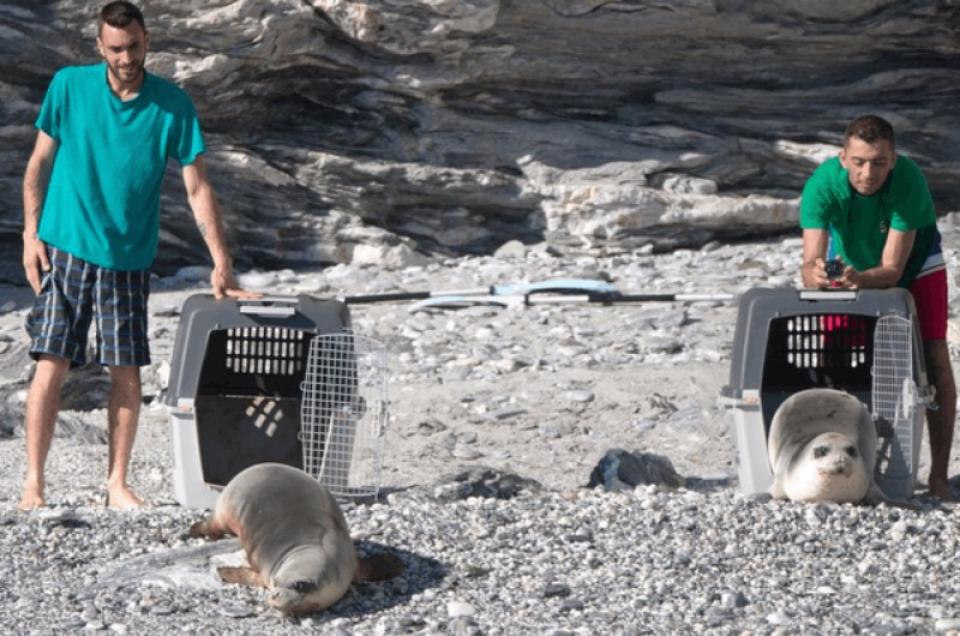 Μετά από 4 σχεδόν μήνες στη μονάδα περίθαλψης και έχοντας την ψυχολογική στήριξη η μία της άλλης, απελευθερώθηκαν υγιείς στα καταγάλανα νερά των Κυκλάδων.