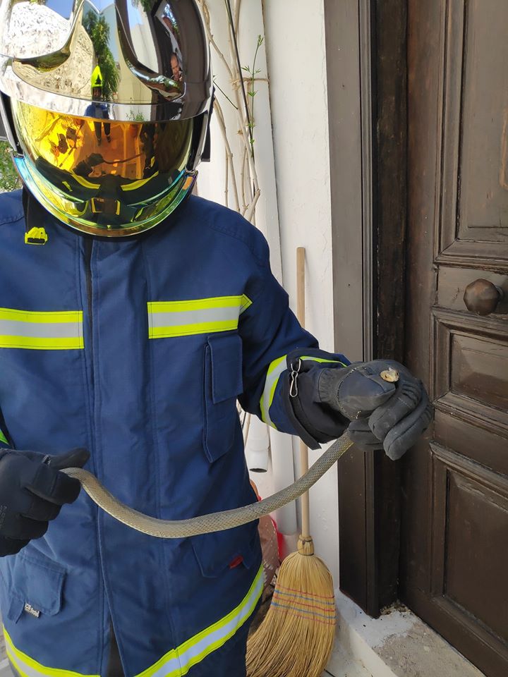 "το φίδι, άκακο και φοβισμένο, αιχμαλωτίστηκε από τους συναδέλφους, απομακρύνθηκε με ασφάλεια από το σπίτι όπου βρισκόταν και αφέθηκε ελεύθερο πίσω στο φυσικό του περιβάλλον για να συνεχίσει ήσυχο την ζωή του.