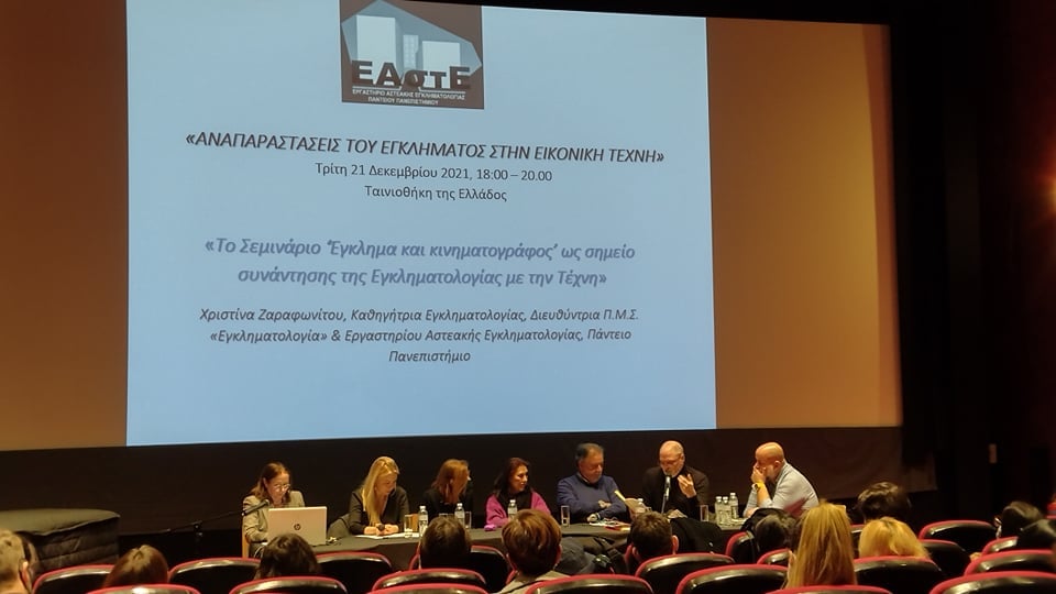Την Τρίτη 21 Δεκεμβρίου πραγματοποιήθηκε η εκδήλωση του Εργαστηρίου Αστεακής Εγκληματολογίας του Παντείου Πανεπιστημίου με θέμα: «ΑΝΑΠΑΡΑΣΤΑΣΕΙΣ ΤΟΥ ΕΓΚΛΗΜΑΤΟΣ ΣΤΗΝ ΕΙΚΟΝΙΚΗ ΤΕΧΝΗ» στην Ταινιοθήκη της Ελλάδος, με την οποία συνδιοργανώθηκε.