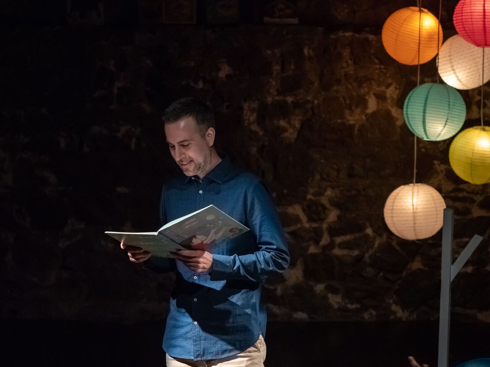 Ναι! Η αλήθεια είναι πως δεν έχω κάνει κάτι ανάλογο στο παρελθόν, ούτε θα το έκανα αν δεν υπήρχαν παιδιά στο κοινό. Ήταν μια ιδέα που είχαμε από την αρχή με την Αθηνά Αρσένη, απλά δεν ξέραμε την τελική της μορφή. Κάποιες επιλεγμένες Κυριακές λοιπόν, που δεν θα είναι ανακοινώσιμες, θα βρίσκομαι και εγώ στο Θέατρο Αλκμήνη, ώστε να υπογράφω τα βιβλία μου και ίσως τελικά να κάνω ένα πέρασμα από τη σκηνή, ερμηνεύοντας για 30 δευτερόλεπτα τον εαυτό μου. Τον συγγραφέα δηλαδή, ο οποίος με την παρουσία του δίνει την αίσθηση της αφήγησης της όλης ιστορίας και μεταφέρει τη σημασία της ανάγνωσης και των παραμυθιών στη ζωή μας.
